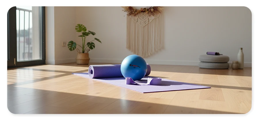 Zestaw do jogi i pilatesu, zawiera karimatę, piłkę oraz gumowy ekspander. więcej