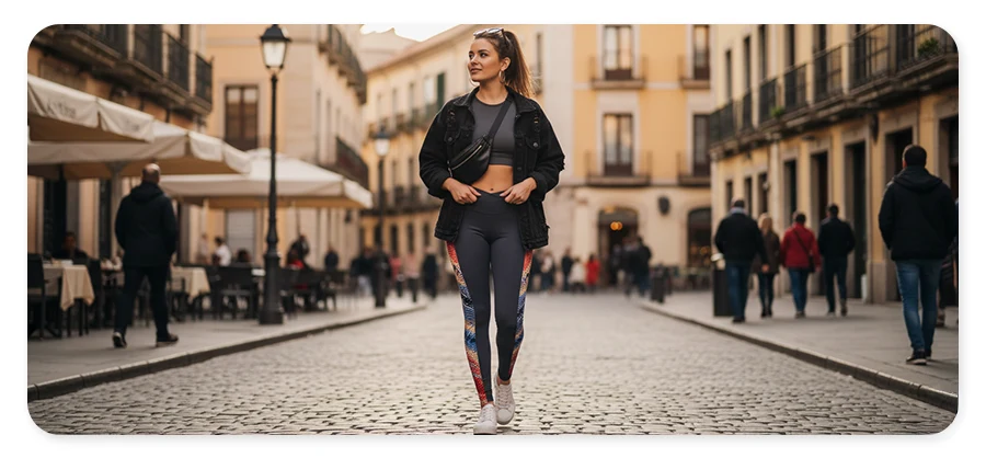 Bezpieczeństwo i estetyka spotykają się w materiale o gęstości 200 DEN, który gwarantuje całkowicie nieprześwitującą strukturę, dając Ci stuprocentową pewność w każdej pozycji. Jakość włókien potwierdza międzynarodowy certyfikat Oeko-Tex, świadczący o tym, że tkanina jest w pełni bezpieczna i wolna od toksycznych substancji. Legginsy treningowe BAS BLACK to nie tylko funkcjonalność, ale też wyrafinowany design z precyzyjnie wkomponowanym, barwnym akcentem graficznym.
