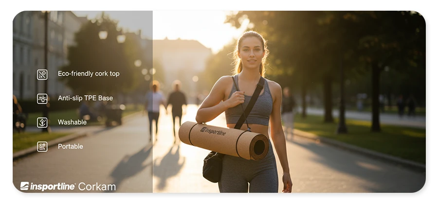 Chcesz mieć przyjemną i atrakcyjną wizualnie matę? Mata do ćwiczeń inSPORTline Corkam spełni życzenia każdego, kto łączy najwyższe wymagania podczas ćwiczeń z preferencjami do wykorzystania naturalnych materiałów.