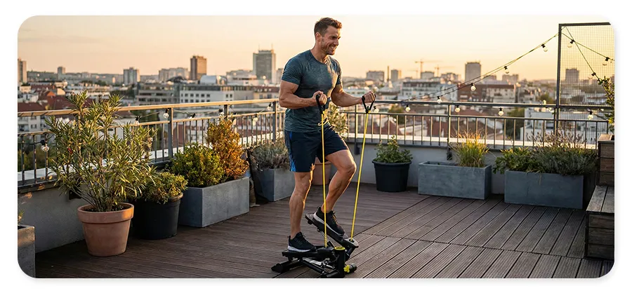 Konstrukcja inSPORTline Legro charakteryzuje się wyjątkowym połączeniem stabilności z lekkością, co czyni go idealnym urządzeniem do użytku domowego. Ważąc zaledwie 8,3 kg, jest łatwy do przenoszenia i przechowywania, nie rezygnując przy tym z solidności potrzebnej do bezpiecznego wykonywania ćwiczeń. Antypoślizgowe stopnie zapewniają dodatkowo komfort i bezpieczeństwo nawet podczas intensywnych treningów.