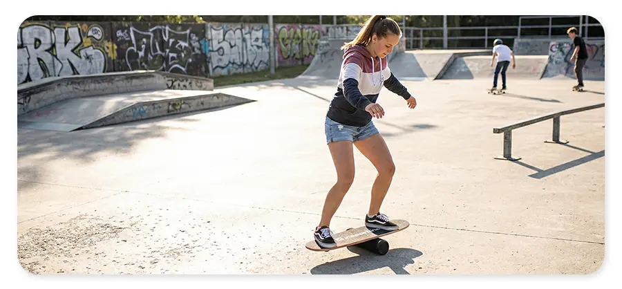 Solidna drewniana deska ma szorstką powierzchnię, która zapobiega ślizganiu i zapewnia lepszy chwyt. Ograniczniki bezpieczeństwa na spodzie deski są idealne dla początkujących, ponieważ pozwalają im poczuć się pewniej. Cylinder o średnicy 10,5 cm zapewnia idealny kąt przechyłu.