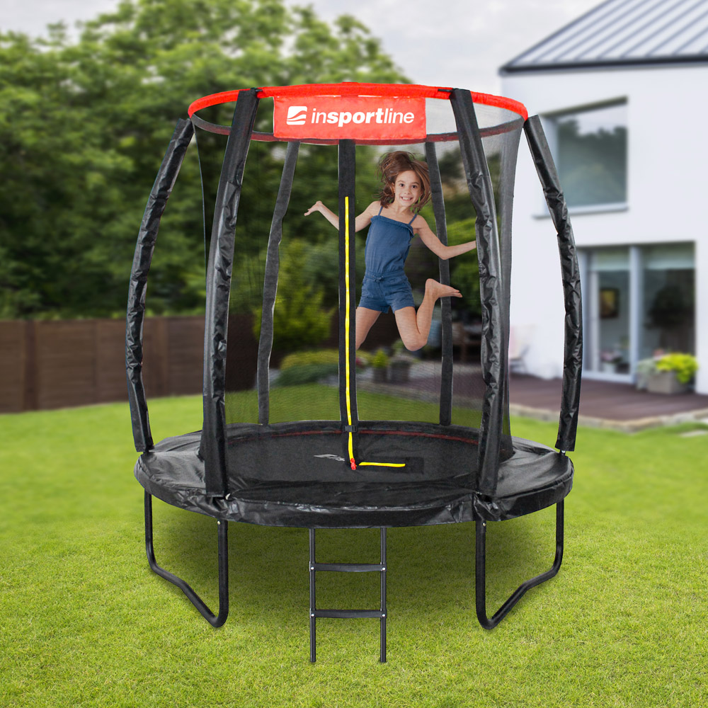 Wiele innych elementów zestawu również zadba o bezpieczeństwo Twojego dziecka. Sprężyny podtrzymujące trampolinę schowane są pod pokrowcem ochronnym, a słupki siatki wyściełane są piankowym rękawem. Drabinka antypoślizgowa umożliwia bezpieczne wejście na trampolinę, a wejście zabezpieczone jest nie tylko zamkiem błyskawicznym, ale również klamrami. Dzięki średnicy 183 cm ta trampolina zmieści się w Twoim ogrodzie. Jeśli chcesz zabawiać niespokojnych członków rodziny (w tym dorosłych), trampolina inSPORTline Flea 183 cm jest najlepszym wyborem!