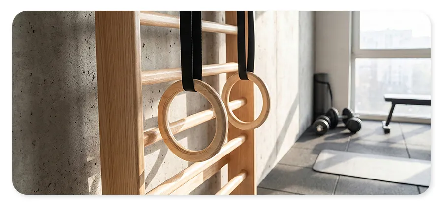 Kółka gimnastyczne do drabinek uczynią Twój trening w domu bardziej wszechstronnym. Przymocuj je do drążka do podciągania, umieść na drabince i zacznij ćwiczyć górną część ciała. Możesz również dopasować długość pasków do swojego wzrostu.