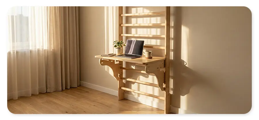 Zmień swój domowy kącik treningowy w stylowe biurko, nie tracąc przy tym cennej przestrzeni mieszkalnej. Ten elegancki element, wykonany z naturalnego drewna bukowego, idealnie wpisuje się w nowoczesne wnętrza, oferując minimalistyczny design bez zbędnych dodatków. Dzięki perfekcyjnemu dopasowaniu do systemu inSPORTline Dremar, zyskujesz ergonomiczne miejsce pracy, które w jednej chwili może zniknąć, przywracając pokojowi jego sportowy charakter.