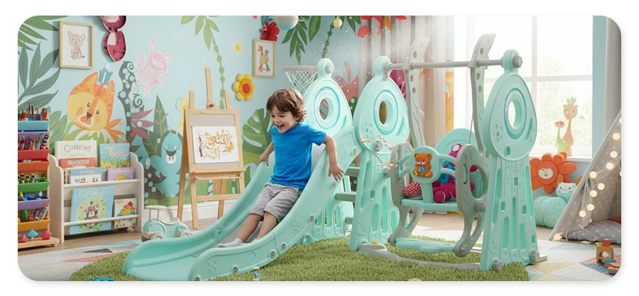 Niezależnie od pogody, każdego dnia czeka nowa przygoda i sposób na spożytkowanie nieskończonej energii. Nasza multifunkcyjna zjeżdżalnia dla dzieci to kompletne centrum domowej rozrywki, które z łatwością przeniesiesz z salonu do ogrodu. Model inSPORTline Swingslide 4w1 angażuje na wiele sposobów – od dynamicznego zjazdu, przez celne rzuty do kosza, aż po interaktywną zabawę z muzycznym misiem, gwarantując, że nuda nigdy nie zagości w Twoim domu.