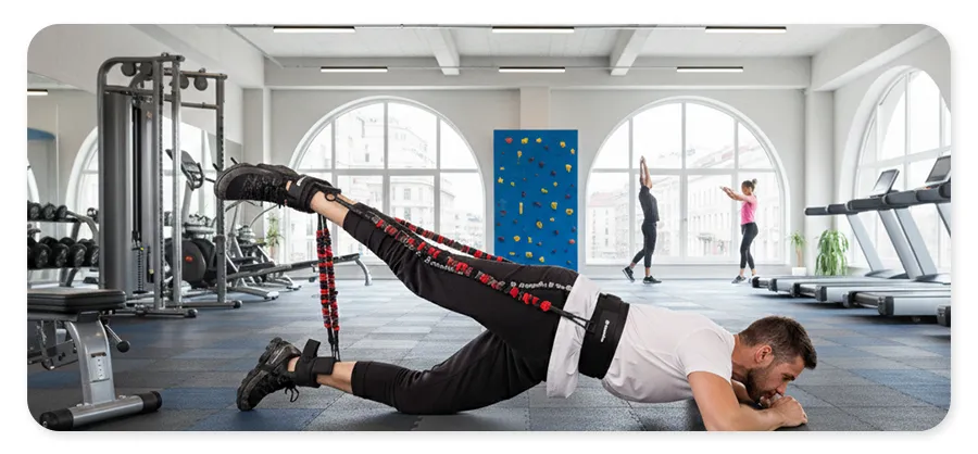 Ekspander do ćwiczeń inSPORTline Striker Jump to innowacyjne narzędzie przeznaczone do treningu siłowego nóg i tułowia. Zestaw składa się z czterech elastycznych taśm wyposażonych w paski na kostki oraz pas biodrowy, które można łatwo połączyć za pomocą stalowych karabińczyków. Dzięki temu sprzęt wspiera poprawę koordynacji mięśniowej, postawy, eksplozywności oraz ogólnej sprawności.