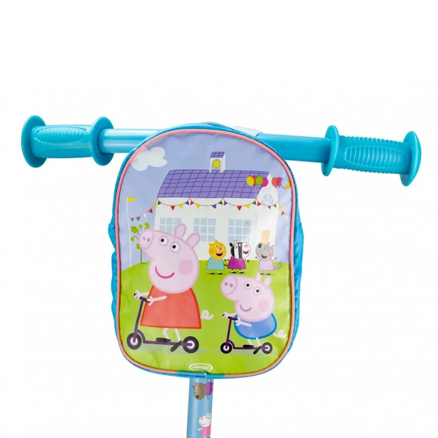 Dziecięca hulajnoga trójkołowa Świnka Peppa z fajną torbą to urocza hulajnoga idealna dla najmłodszych. Dzięki szerokiemu, antypoślizgowemu deckowi i dwóm tylnym kołom Twoje dziecko nie straci równowagi i będzie mogło cieszyć się jazdą! Jest też mała torba na kierownicę, w której możesz umieścić swoją przekąskę lub ulubioną zabawkę.