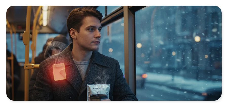 Jednorazowy ogrzewacz do ciała, który aktywuje się po kontakcie z powietrzem i zapewnia przyjemne ciepło aż do 8 godzin – idealny na zimowe dni oraz aktywności na świeżym powietrzu. więcej