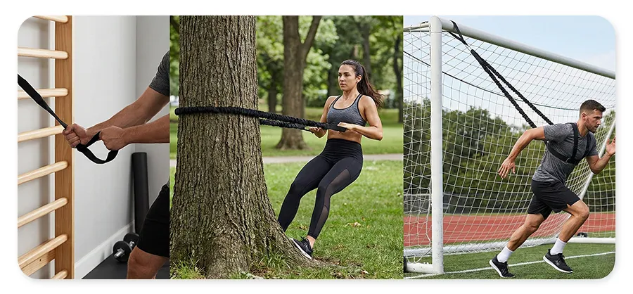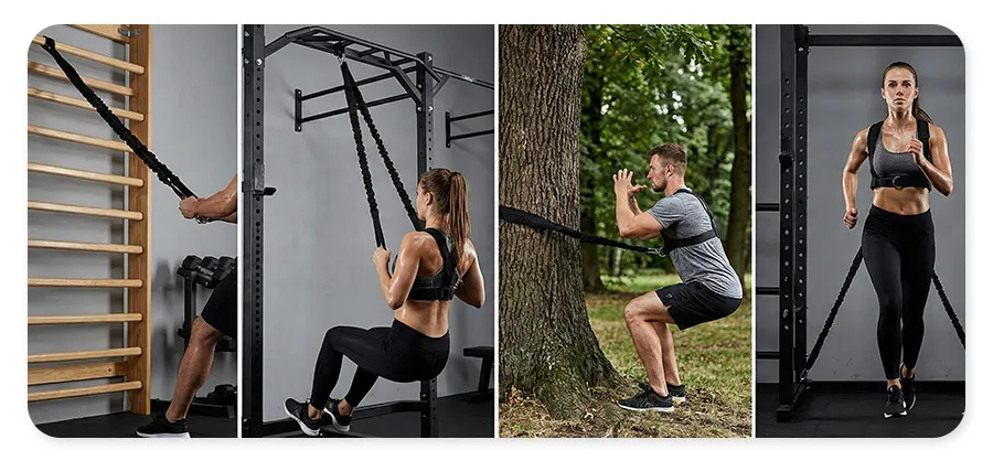 Elastyczna lina do umiarkowanego treningu, regulowane paski wokół talii, wytrzymałe karabińczyki, rękaw ochronny. więcej