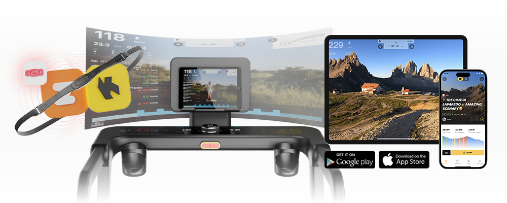 Korzystając z Bluetooth, bieżnia inSPORTline może być zsynchronizowana z inteligentnymi aplikacjami treningowymi Kinomap i Zwift, umożliwiając: ustawianie celów i tworzenie planów treningowych, prowadzenie wirtualnego wyścigu lub bieganie po zaprogramowanych trasach (z wideo) oraz śledzenie danych w aplikacji. Bieżnia jest oczywiście wyposażona w uchwyty na tablet i butelkę z wodą, dzięki czemu można oglądać filmy treningowe i pozostać nawodnionym podczas treningu.
