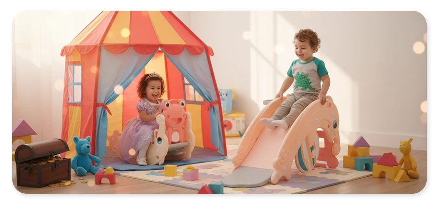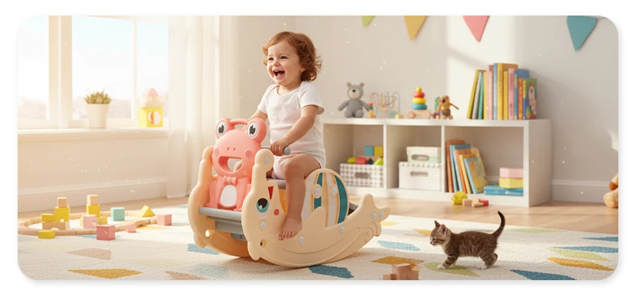 Cenimy Twój czas, dlatego postawiliśmy na intuicyjność. Dzięki systemowi szybkiej transformacji 3w1, zmiana funkcji inSPORTline Frofino z bujaka w zjeżdżalnię zajmuje dosłownie chwilę i nie wymaga żadnych narzędzi. To przemyślana konstrukcja modułowa, która bez wysiłku dopasowuje się do Waszego rytmu dnia i potrzeb rosnącego dziecka.