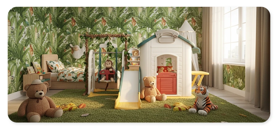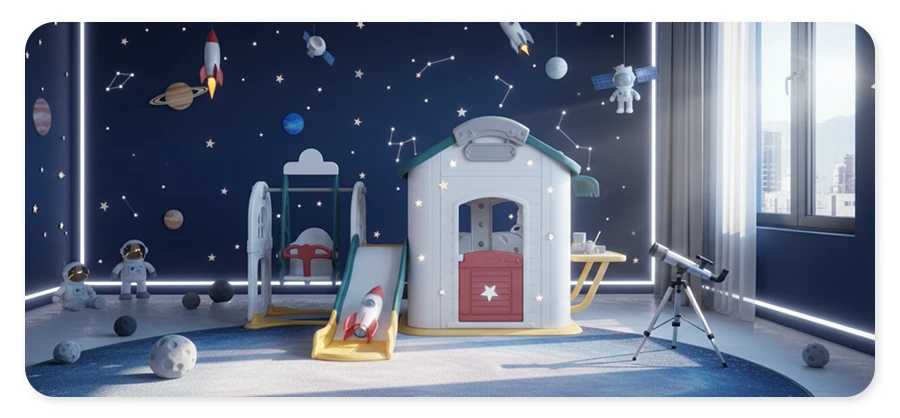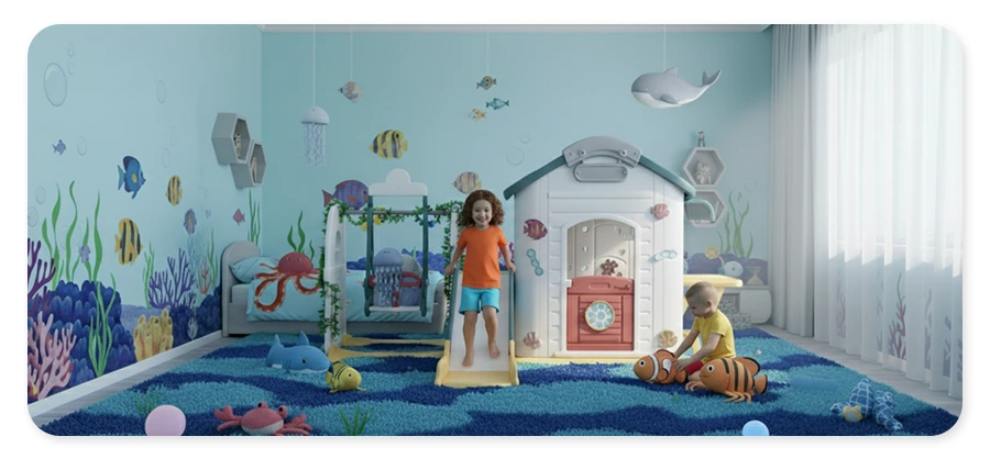Możesz wybrać spośród aż 4 opcji konfiguracji - kompletny zestaw ze zjeżdżalnią i huśtawką, domek ze zjeżdżalnią (możesz wybrać kierunek zjeżdżalni) lub tylko domek. Zestaw można łatwo dostosować do wielkości pomieszczenia.