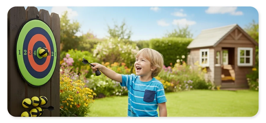 Zestaw zawiera 6 bezpiecznych rzutek i 6 piłek, które łatwo przyklejają się do tarczy dzięki rzepom. W rezultacie rzucanie piłkami/rzutkami do celu jest naprawdę łatwe, ale dzieci mogą nadal ćwiczyć swoje umiejętności motoryczne, koncentrację i celność.