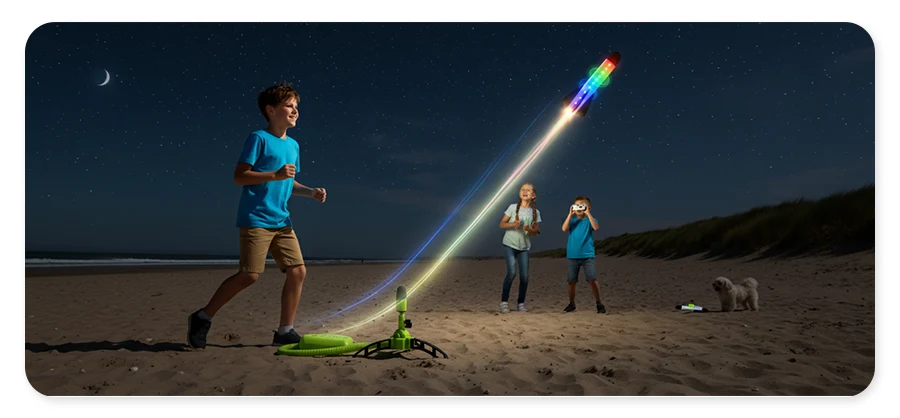 Kiedy słońce chowa się za horyzontem, prawdziwa magia dopiero się zaczyna. Wyjątkowe świecące rakiety zamieniają każdy wieczór w zachwycający wizualny spektakl, przecinając niebo smugą światła. Wyrzutnia inSPORTline LURS780 redefiniuje pojęcie zabawy po zmroku, dostarczając niezapomnianych wrażeń, które pobudzają wyobraźnię.