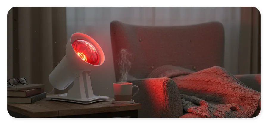 Lampę umieść w odległości około 30–60 cm od ciała, dostosowując ją do swoich potrzeb i komfortu. Jeśli temperatura będzie zbyt wysoka, ustaw lampę w dalszej odległości. Nowym użytkownikom zaleca się rozpoczęcie od najniższej intensywności światła i najkrótszego czasu zabiegu. Aby uzyskać widoczne efekty, stosuj urządzenie codziennie, nie częściej niż dwa razy dziennie i nie dłużej niż przez 40 minut. Promiennik podczerwieni powinien znajdować się co najmniej 1 metr od łatwopalnych przedmiotów.