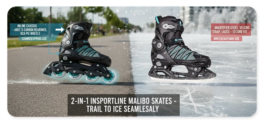 Rolki i łyżwy 2w1 inSPORTline Malibo – jazda przez cały rok, bez kompromisów!