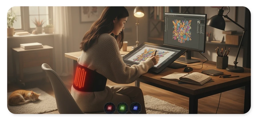 Wygodny pas biodrowy ogrzewający plecy. Stały rzep, kieszeń na powerbank, złącza USB-A i USB-C. więcej