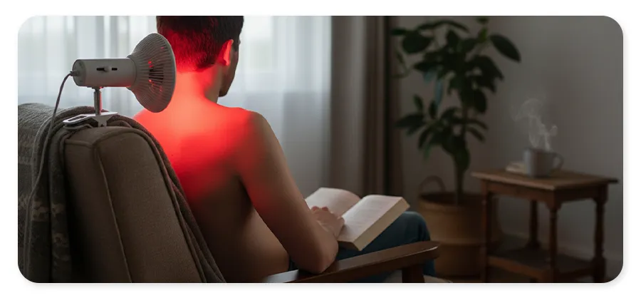 Ustaw lampę w odległości około 30 do 60 centymetrów (w zależności od potrzeb) od ciała. Jeśli temperatura jest zbyt wysoka, przesuń lampę dalej.