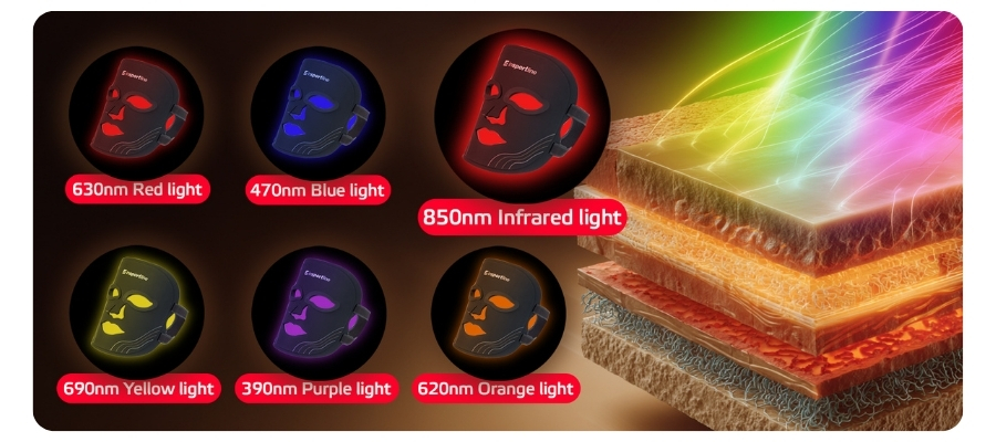 Maska LED ze światłem podczerwonym do zabiegu na skórę, który dostosowuje się do Ciebie i pomaga rozjaśnić Twoją skórę. więcej