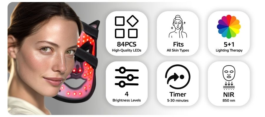 Maska Radora LED wykorzystuje światło podczerwone, które wnika głębiej w skórę niż konwencjonalne kolory LED. Oznacza to silniejsze wsparcie regeneracji, lepszą odnowę komórek i bardziej intensywny "efekt przebudzenia" skóry. Tę główną zaletę uzupełniają 84 diody LED - duża liczba zapewnia równomierne oświetlenie całej twarzy, dzięki czemu zabieg jest skuteczny w każdym zakątku skóry.