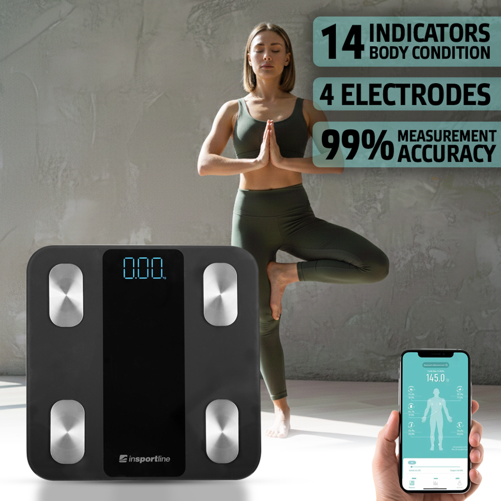 Waga inSPORTline Syncale 20 oferuje zaawansowaną analizę składu ciała w maksymalnie 14 wskaźnikach. Oprócz samej masy ciała i BMI, śledzi również tkankę tłuszczową, w tym tłuszcz trzewny i podskórny, procent masy mięśniowej i kostnej, poziom nawodnienia organizmu i beztłuszczową masę ciała. Uwzględniono również bardziej zaawansowane dane, takie jak podstawowa przemiana materii (BMR), wiek biologiczny organizmu lub poziom białka, co daje kompleksowy przegląd kondycji fizycznej i długoterminowego rozwoju sprawności.