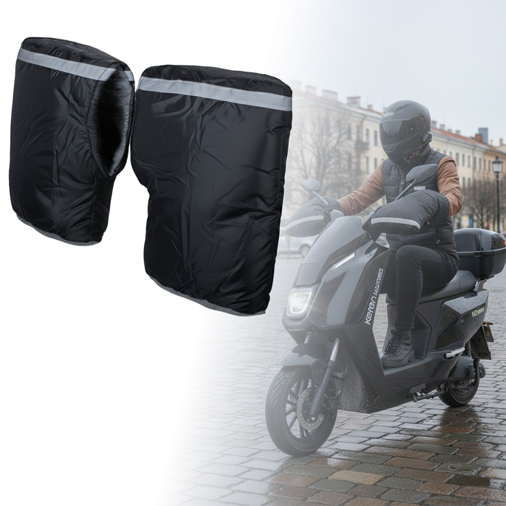 Zima, wiatr i zmarznięte dłonie? To już przeszłość. Mufki na kierownicę inSPORTline Glovara to doskonały dodatek do jazdy na skuterze, hulajnodze elektrycznej oraz elektrycznych pojazdach trójkołowych i czterokołowych (np. skuterach inwalidzkich). Wystarczy je nałożyć, zacisnąć ściągacz, a dłonie natychmiast znajdą się w przyjemnym cieple. Miękkie wewnętrzne futerko wspaniale grzeje i nie ogranicza ruchów podczas kierowania.