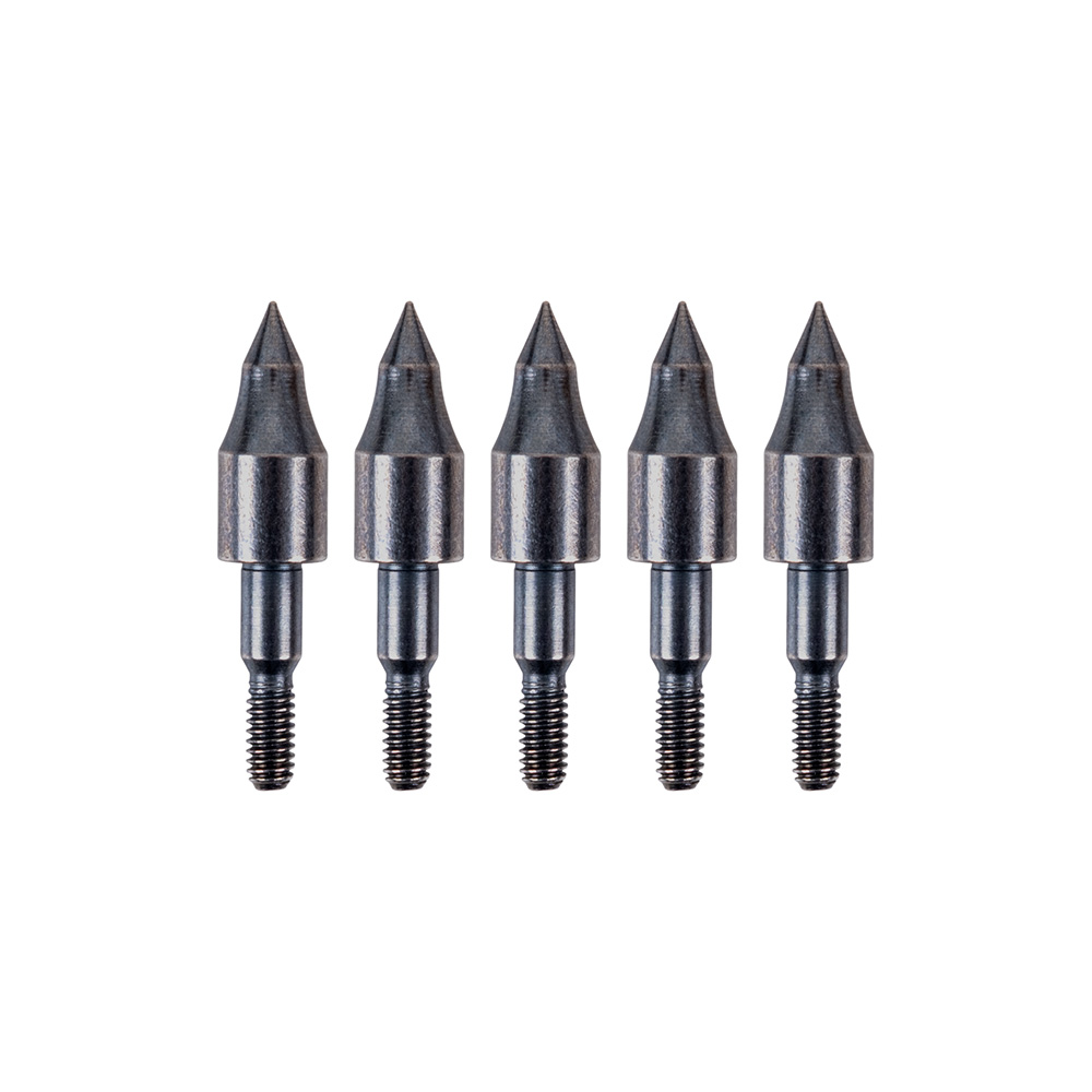 Groty wykonane są ze stali i zaprojektowane z dbałością o odpowiednie wyważenie. Średnica gwintu 4 mm odpowiada kompatybilnym strzałom.