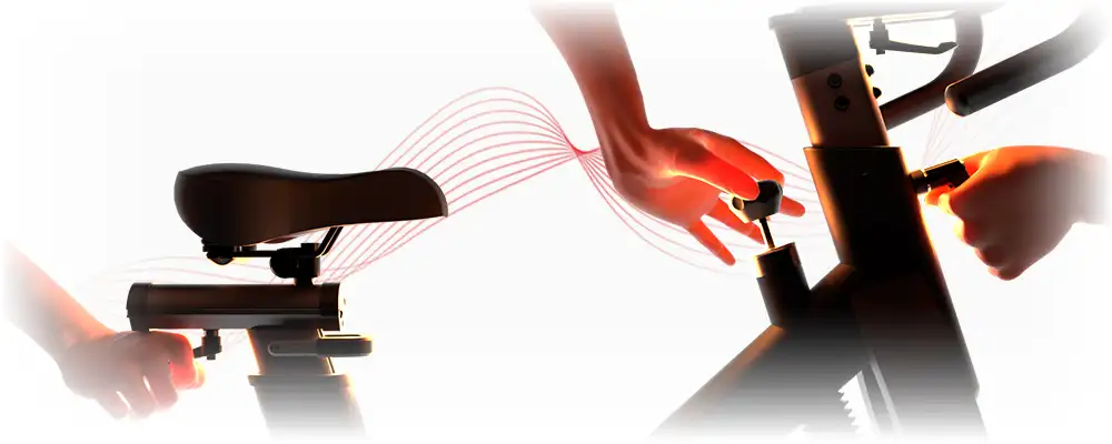 Kluczowy jest również system hamowania. Pamiętaj, że spinning to często "ostre koło" (stały napęd), gdzie pedały poruszają się razem z kołem. W modelach Premium dźwignia oporu pełni funkcję intuicyjnego hamulca bezpieczeństwa - jeden ruch ręką natychmiast zatrzymuje rozpędzone koło zamachowe, chroniąc Cię przed kontuzją.